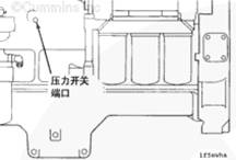 將康明斯壓力開關(guān) 安裝在機(jī)油濾清器后面,左排上的主油道中,如圖所示。