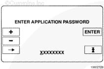 按下正號(+)和負(fù)號(-)按鈕選擇密碼的第一個字符。輸入應(yīng)用程序密碼設(shè)置子菜單,或輸入用戶密碼調(diào)整子菜單。