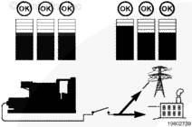 同步檢查(容許)功能在自動和手動運行模式下都可以工作。控制系統(tǒng)將確保發(fā)電機組處于正確電壓,在規(guī)定的時間段中保持在規(guī)定的同步檢查窗口內(nèi),以及相位旋轉(zhuǎn)正確。