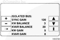 kW 平衡:此功能調(diào)整發(fā)電機組的 kW 負(fù)載分配功能。在調(diào)整此項數(shù)值前,應(yīng)進(jìn)行所有發(fā)電機組的標(biāo)定。如果系統(tǒng)上的總負(fù)載沒有按比例分配,可以利用 kW 平衡調(diào)整發(fā)電機組,達(dá)到更精確的負(fù)載分配。增大 kW 平衡的數(shù)值將使發(fā)電機組降低本臺發(fā)電機組占總 kW 負(fù)載的百分比。