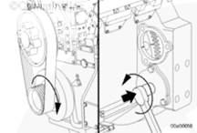 按照皮帶輪上的箭頭指示,用盤車工具順時針轉動發動機。