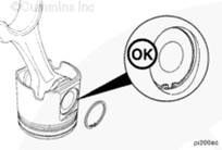 注: 每個活塞環(huán)的開口都不得與活塞銷或其它活塞環(huán)的開口對齊。如果活塞環(huán)的開口位置不正確,活塞環(huán)就不能正確密封。