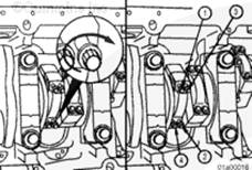 連桿和連桿蓋的號碼必須相同,并裝入正確的氣缸中,否則可能會出現(xiàn)發(fā)動機損壞。
