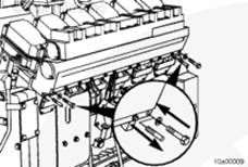 注: 檢查是否有兩個管塞安裝在左排中冷器供應管法蘭上。如果沒有安裝,使用 Loctite(零件號 3375066)安裝管塞并擰緊。