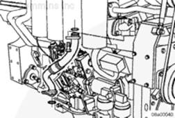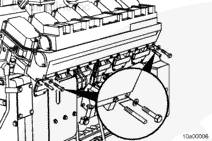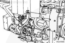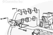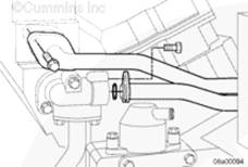 將密封墊和輸水接頭安裝到右排中冷器下部端口。安裝螺栓。扭矩值: 65 n.m [48 ft-lb]