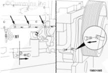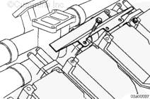 擰緊螺栓。扭矩值: 65 n.m [48 ft-lb],擰緊 V 形帶箍。扭矩值: 14 n.m [124 in-lb],用夾子將渦輪增壓器機油供油管連接在空氣跨接管上。扭矩值: 65 n.m [48 ft-lb]