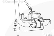 將密封墊安裝到回水管法蘭上。安裝螺栓并擰緊。扭矩值: 65 n.m [48 ft-lb]