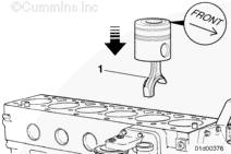 對齊活塞頂部的“Front”(前)標記和/或箭頭,以便使其指向發動機前部。