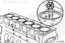 如果活塞突出量不符合技術規范,核實是否安裝了正確的零件,和/或缸體燃燒面是否機加工不當。參考第 1 節中的步驟 001-026。確認所使用的活塞等級是正確的。參見此步驟中的“活塞級別”部分。