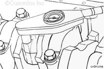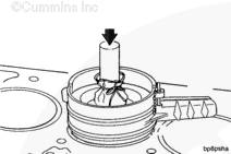 用發動機盤車工具(零件號 3824591)旋轉曲軸,直到活塞位積碳下方(可在活塞環行程區域的上方找到)。