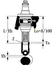 x+y: 缸體中安裝平面到挺柱的高度與標(biāo)準(zhǔn)高度之差。墊片厚度Ts的計(jì)算公式 Ts=(L-Vh)-(Lo+A/100) 缸體中安裝平面到挺柱的高度與標(biāo)準(zhǔn)高度Le之差。L值即為L(zhǎng)=Le+x+y。只更換高壓泵,需知道提前角和A值,根據(jù)公式即可得出墊片厚度Ts。Ts=Ek-(Lo+A/100)確定與噴油泵正時(shí)相對(duì)應(yīng)(缸)的活塞上止點(diǎn);