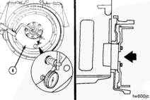 將千分表的觸頭對著飛輪端面安裝,盡可能靠近外徑,以檢查端面(4)的跳動量。