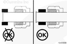 將康明斯ISX15 CM2250發(fā)動(dòng)機(jī)冷卻液回流管的另一端裝入缸體上的密封圈。