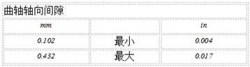 注: 止推軸承及曲軸軸頸的尺寸決定其軸向間隙。