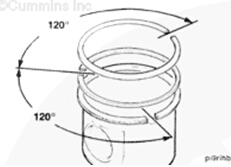 注: 每個活塞環的開口都不得與活塞銷或其它任何活塞環的開口對齊。如果活塞環的開口定位不正確,活塞環就不能正確密封。