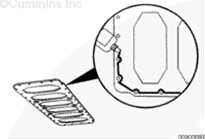 安裝康明斯B3.9、B4.5、B4.5 RGT 和 B5.9 發動機缸體加強板,讓帶有凹槽的缸體加強板外延部分與位于發動機前部的吸油管安裝位置相鄰。