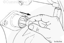 注: 發(fā)動(dòng)機(jī)冷卻液溫度必須低于 60°C [140°F]。使用盤車工具(零件號(hào) 3824591),在按壓發(fā)動(dòng)機(jī)正時(shí)銷的同時(shí)緩慢轉(zhuǎn)動(dòng)曲軸,以定位 1 號(hào)氣缸的上止點(diǎn) (TDC)。