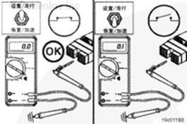 將開關轉到“ON”(接通)位置并測量電阻值。萬用表必須顯示為閉路(10 歐姆或更小)。