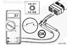 將測試導線插入原始設備制造商 (OEM) 線束接頭的巡航控制 ON/OFF 開關信號觸針,并且將其與萬用表表筆相連。將另一根表筆接觸康明斯ISF3.8 CM2220發動機缸體接地。