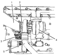 2松開軟管卡箍(3),然后將管組件(5)從Perkins1106A/C發(fā)動(dòng)機(jī)渦輪增壓器(4)上斷開。