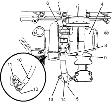 10.將管組件(14)從Perkins1106A/C發(fā)動(dòng)機(jī)渦輪增壓器(4)和Perkins1106A/C發(fā)動(dòng)機(jī)缸體上拆下。