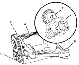 4如有必要,從Perkins1106A/C發(fā)動機機油泵的前蓋組件(6)上卸下螺栓(10)。從Perkins1106A/C發(fā)動機機油泵(4)上卸下前蓋組件(6)。