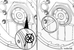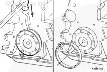 交替擰緊螺母并轉(zhuǎn)動半圈,直到安裝工具接觸到曲軸端。