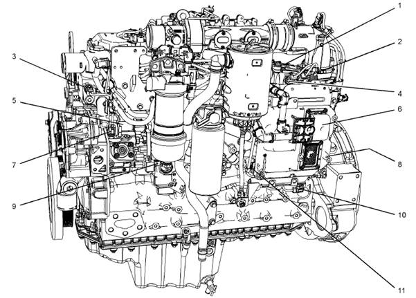 在一個典型的1206e-e66發(fā)動機(jī)左側(cè)的傳感器位置