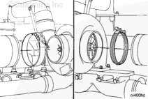 拆下康明斯渦輪增壓器進口接頭。參考第 10 節中的步驟 010-130(渦輪增壓器進口接頭)。