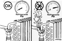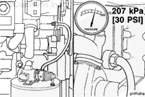 使用一臺能夠連續提供205 kPa [30 psi]壓力的壓力泵。將泵連接至發動機機油濾清器座的前部。