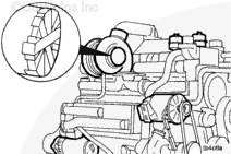 注: 不要在減振器上使用撬棍移動曲軸。這樣做會損壞減振器。