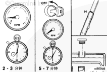 供給干凈的機油。將泵轉到接通 (ON) 位置。并檢查機油壓力表。當表顯示出油壓時,開始監測油底殼中的機油油位。