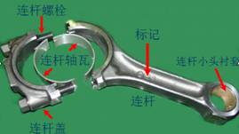 連桿組包括連桿、連桿蓋、連桿螺栓、連桿軸瓦、連桿小頭襯套等。如下圖所示: