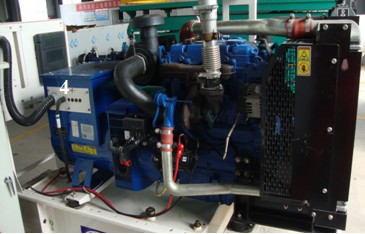 在柴油機汽缸內,經過空氣濾清器過濾后的潔凈空氣與噴油嘴噴射出的高壓霧化柴油充分混合,在活塞上行的擠壓下,體積縮小,溫度迅速升高,達到柴油的燃點。柴油被點燃,混合氣體劇烈燃燒,體積迅速膨脹,推動活塞下行,稱為‘做功’。各汽缸按一定順序依次做功,作用在活塞上的推力經過連桿變成了推動曲軸轉動的力量,從而帶動曲軸旋轉。將無刷同步交流發電機與柴油機曲軸同軸安裝,就可以利用柴油機的旋轉帶動發電機的轉子,利用‘電磁感應’原理,發電機就會輸出感應電動勢,經閉合的負載回路就能產生電流。發電機主要由磁性材料制造多個南北極交替排列的永磁鐵(稱為轉子)和硅鑄鐵制造并繞有多組串聯線圈的電樞線圈(稱為定子)組成。